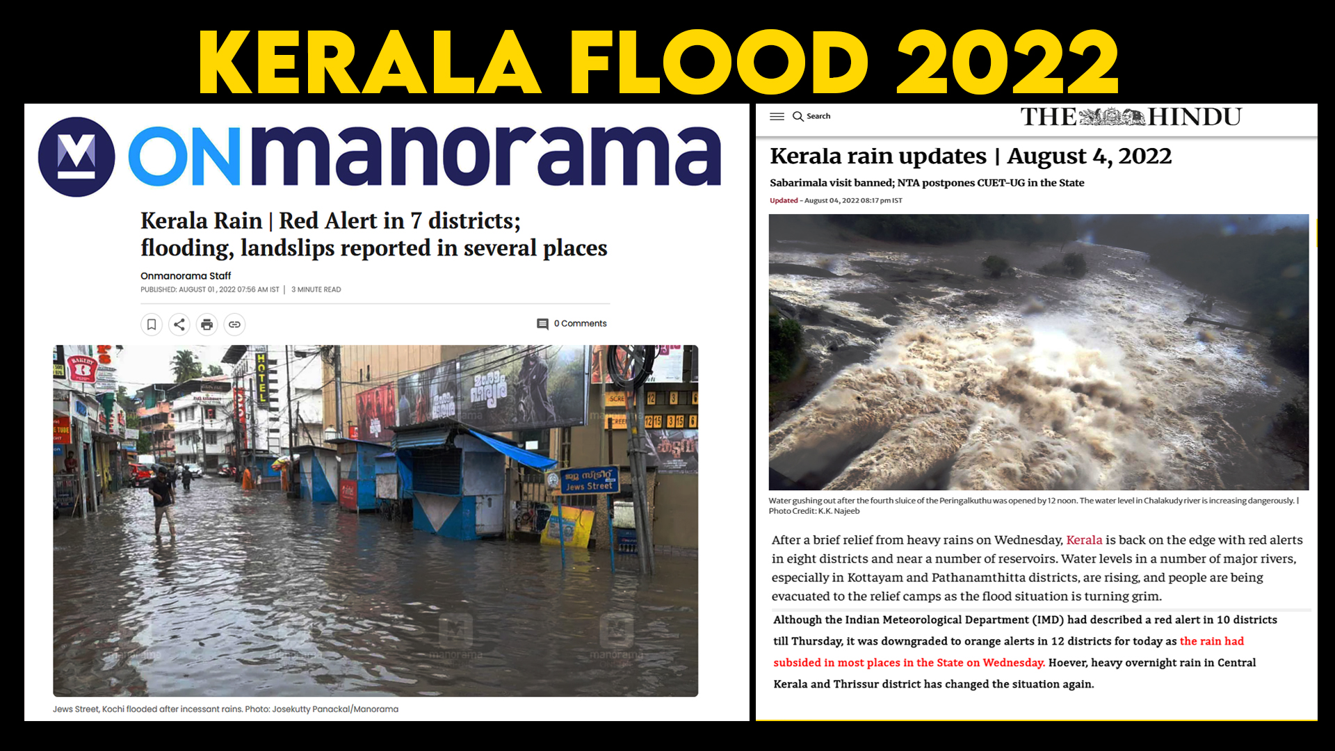 - NEWS: Over 483 people died, and about one million people were evacuated, all the 14 districts of Kerala affected by the flood making it the worst more than a 100 years.