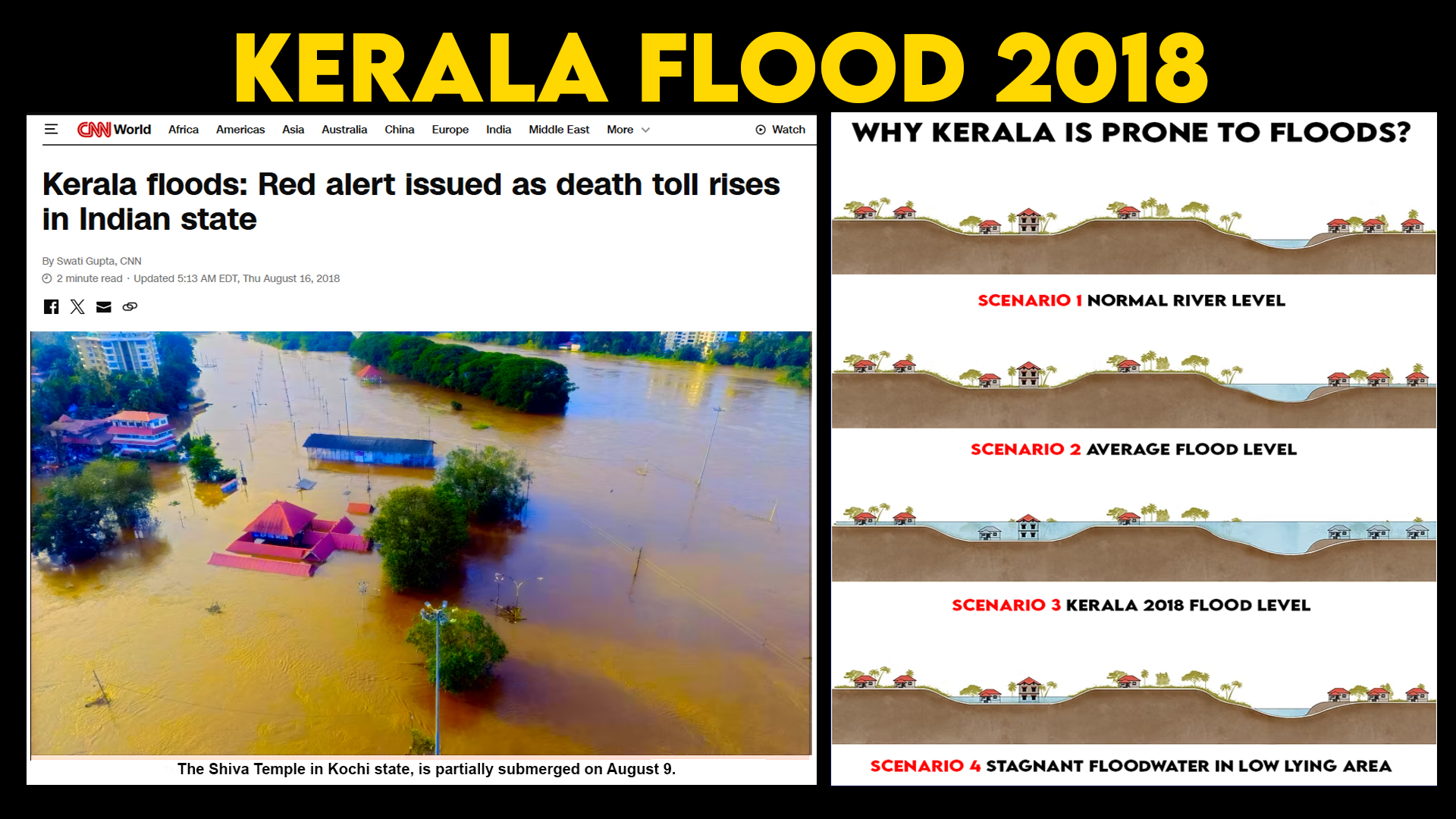 - NEWS: Over 483 people died, and about one million people were evacuated, all the 14 districts of Kerala affected by the flood making it the worst more than a 100 years.