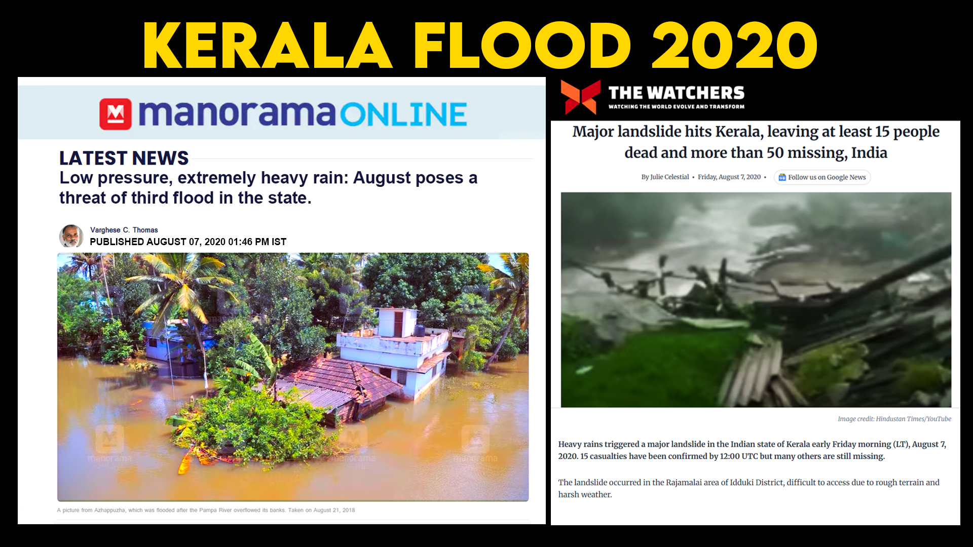 - affected with 104 dead and 40 injured. Five districts in Kerala were flooded on 7 August 2020.